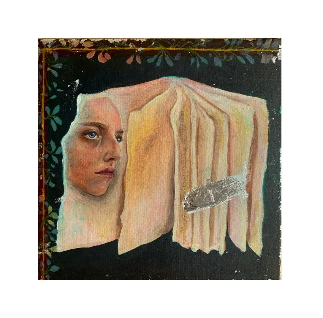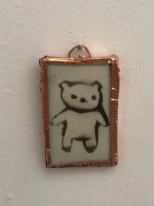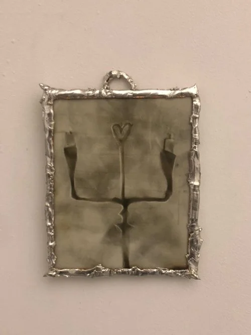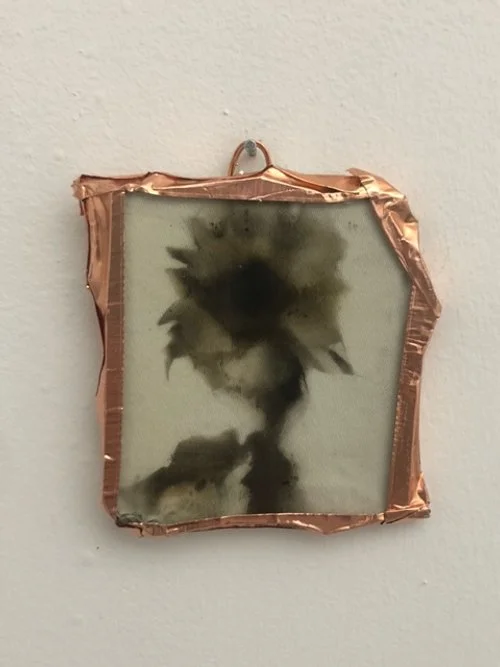 Burnt fabric in copper frame