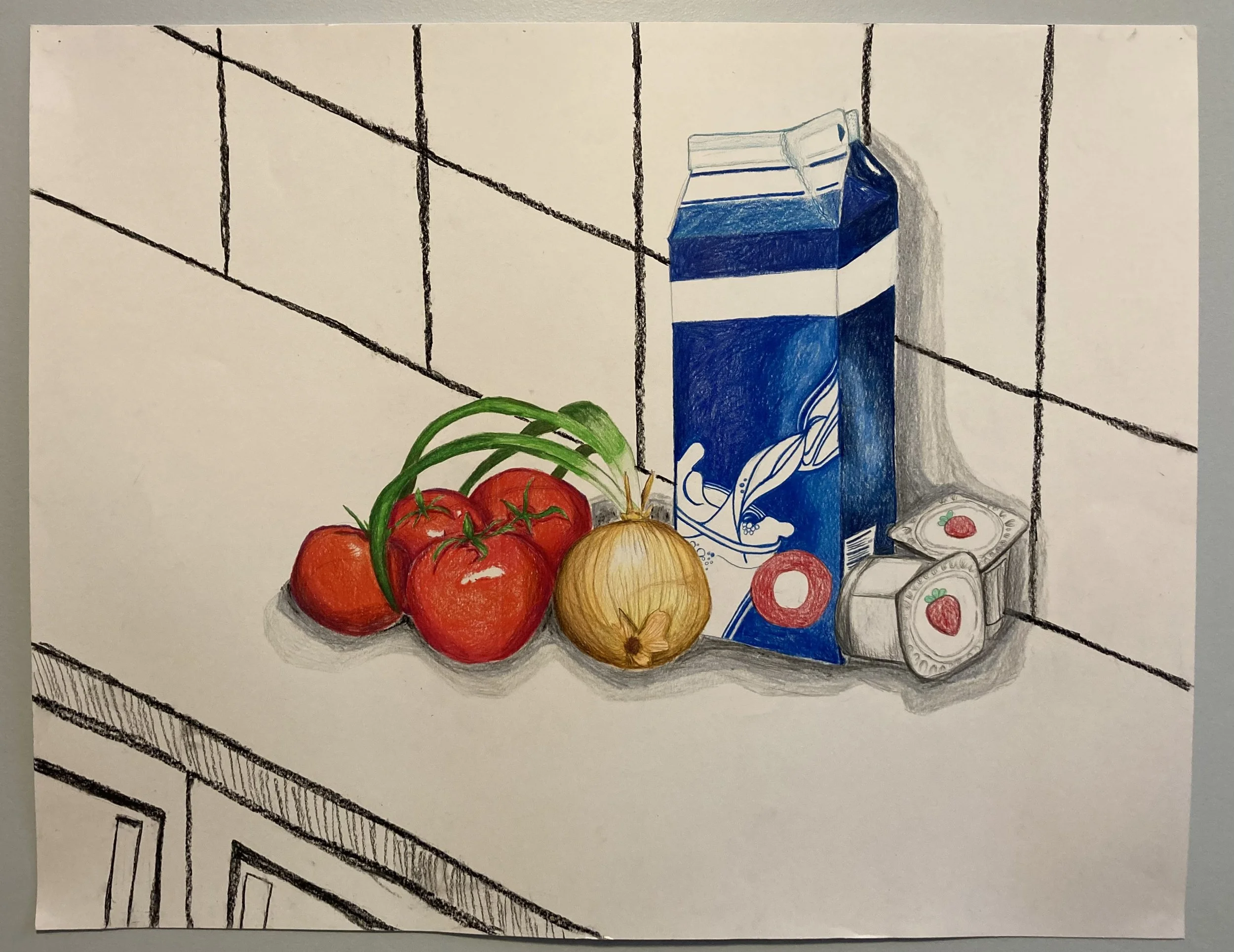 Pencil crayon and charcoal on bristol